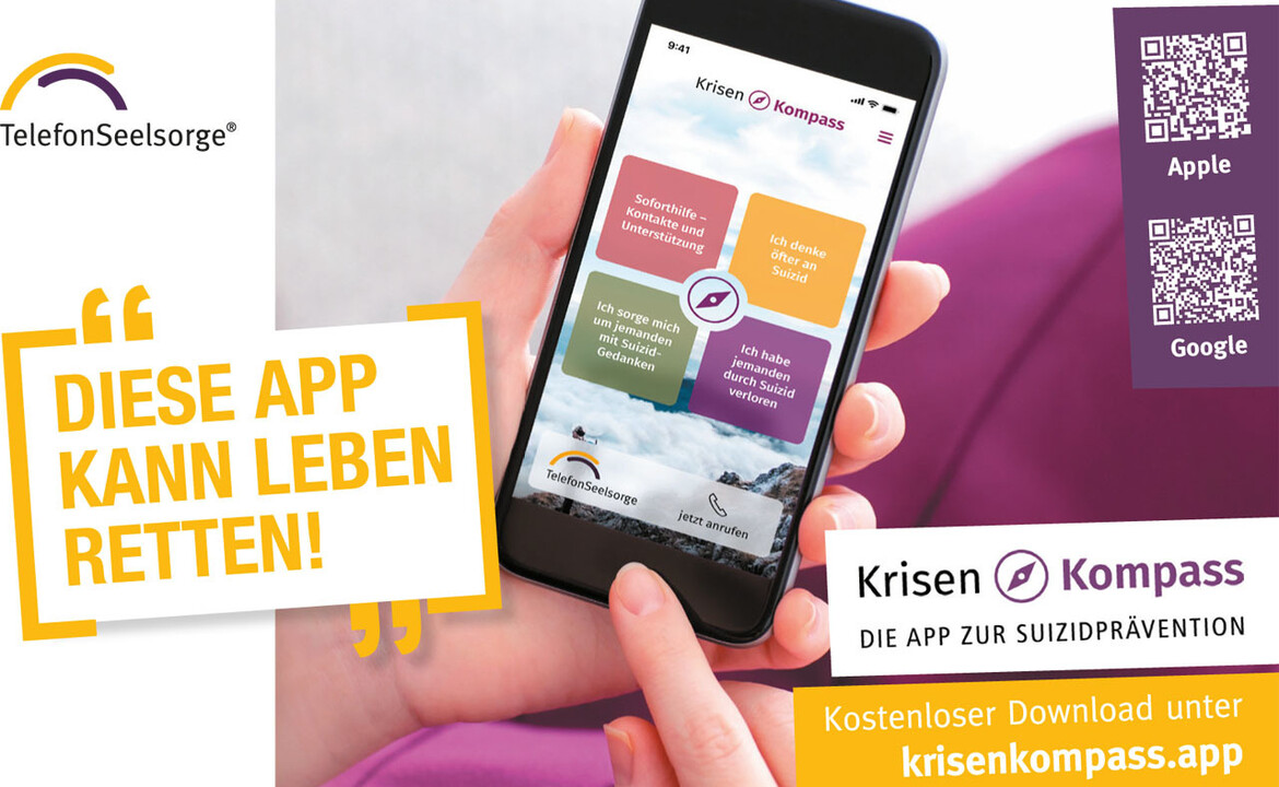Die Telefonseelsorge Deutschland hat Ihre KrisenKompass-App überarbeitet und neue Funktionen angefügt. Die App hat die Hilfe zur Selbsthilfe bei Krisen aller Art im Focus. Der Download der App ist in Google Play oder App Store kostenfrei.